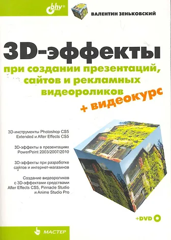 На практических примерах описаны приемы создания 3D-эффектов при подготовке презентаций, оформлении сайтов и интернет-магазинов, а также производстве рекламных видеороликов с использованием популярного у разработчиков программного обеспечения. Рассмотрены основы создания 3D-эффектов в программах Adobe Photoshop Extended и After Effects на примере версии CS5. Показано создание 3D-эффектов в презентациях PowerPoint 2003/2007/2010 при разработке сайта с помощью Photoshop Extended CS5 и Joomla!, при создании рекламных видеороликов с помощью After Effects CS5, Pinnacle Studio и Anime Studio Pro. Уделено внимание использованию 3D-изображений при оформлении интернет-магазинов, созданных с привлечен