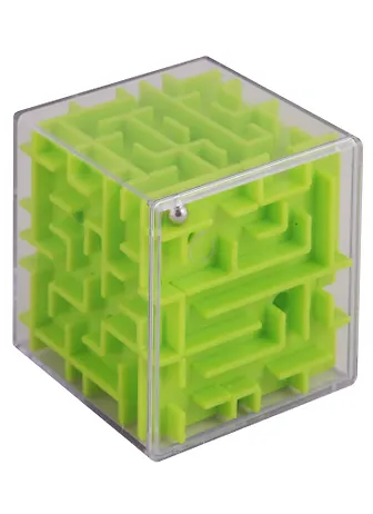Подобная головоломка была у меня в детстве. Теперь я купила ее и своему ребенку. На первый взгляд кажется, что провести шарик по всем дорожкам лабиринта на всех ярусах - это легко и просто. На самом деле, это совсем не так. Сложность состоит особенно на тех ярусах, которые находятся в середине кубика. Явно дорожку не видно, только методом проб и ошибок удается наконец вывести шарик на следующий уровень