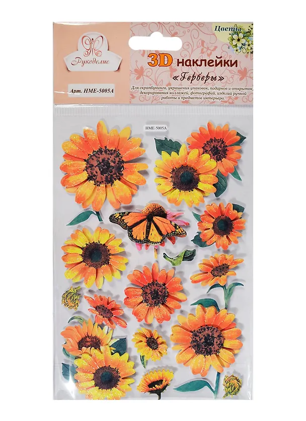 3D Наклейки Цветы Герберы (HMЕ-5005А) (Рукоделие) (упаковка) (3+)