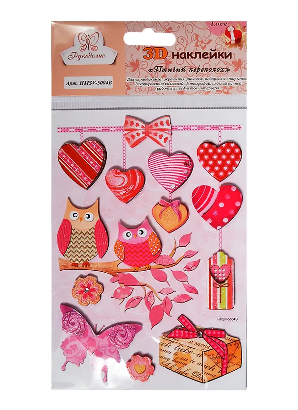 3D Наклейки Love Птичий переполох (HMSV-5004В) (Рукоделие) (упаковка) (3+)