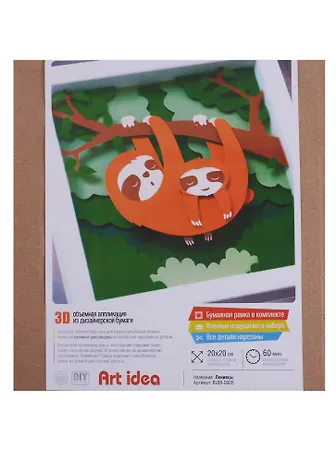 3D объемная аппликация из бумаги Ленивцы 20*20см (BUM-0005) (упаковка) (Art idea )