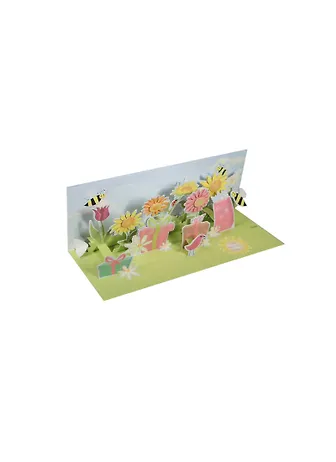 3D открытка Шмели в ромашках (Bees and Dairies) (панорама) (A092) (24,5х11)