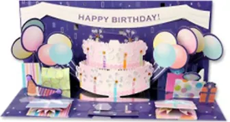 3D открытка Торт и шары (Balloon and Cake Explosion) (панорама) (A027)