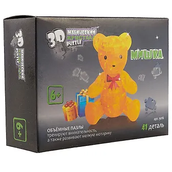 Развивающие головоломки нового поколения — объемные пазлы. Милая фигурка сможет стать романтическим подарком, символом нежной привязанности, для любимого человека или забавной игрушкой и увлекательной головоломкой для вашего малыша. В комплекте есть разные наклейки для этого забавного мишки: большое красное сердце и красный бантик. Объемные пазлы 3D puzzle Магический Кристалл подойдут как детям, так и взрослым. Вы получите не только массу удовольствия, собирая кристаллические фигуры, но и проведете время с пользой: объемные пазлы развивают мелкую моторику рук, а также тренируют внимательность.