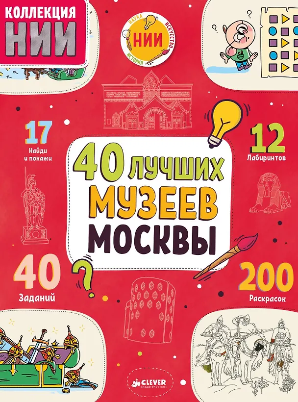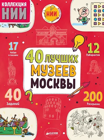 Откройте захватывающий мир искусства, культуры, научных знаний, истории, техники с помощью нашей новой книги! Каждый разворот книжки - это новое приключение для ребёнка по уже знакомым местам: понятный текст, интересные факты о Москве и, конечно, картинки-раскраски! Здесь вы найдете информацию о самом музее, о самых важных и известных его произведениях. Более того, каждое произведение искусства ваш ребенок сможет раскрасить. Вы сможете познакомиться с лучшими картинами русских художников, найти бабочек на картине Ван Гога в Пушкинском музее, нарисовать шапку Мономаха в Оружейной палате и придумать собственный экспонат в Музее современного искусства. Везде вашего малыша ждут веселые приключен