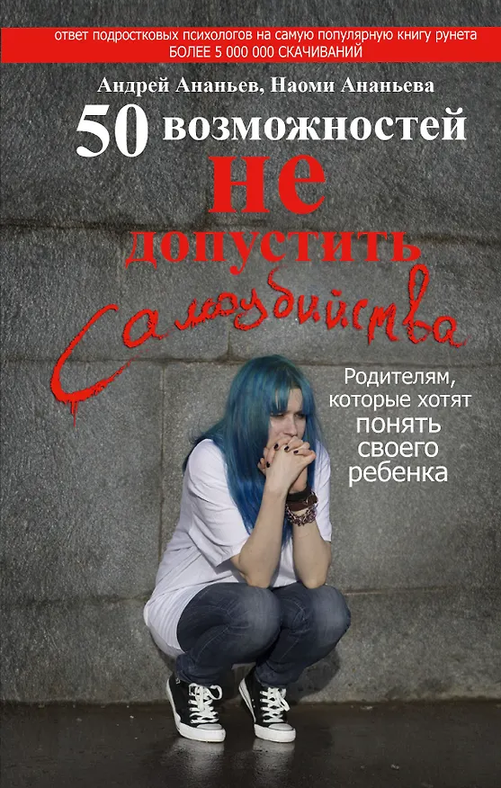 50 возможностей не допустить самоубийства. Андрей Ананьев, Наоми Ананьева.Книга для всех родителей, у кого в доме подросток. Потому у них психика тонкая, и что они надумают себе завтра, не очень понятно. Книга написана просто, и на рассказывает, что происходит с нашими детьми в этом возрасте. И как с ними разговаривать, как их понять, и как сохранить нормальные отношения, чтобы вовремя им помочь.
