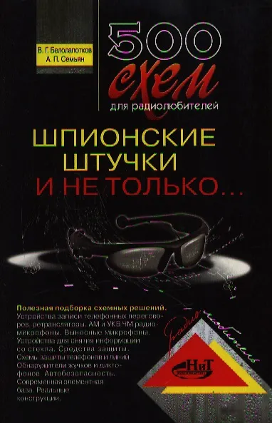 Книга продолжает ряд тематических изданий в серии «Радиолюбитель». Названия этих книг начинаются словами «500 схем...» с уточнениями «Приемники», «Передатчики», «Источники питания», «Радиостанции и трансиверы», «Дистанционное управление моделями»... В данной книге представлены схемные решения устройств для получения информации и защиты своей информации от утечки. Приводимого краткого описания вполне достаточно для самостоятельного изготовления понравившейся конструкции.