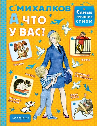 В книге "А что у вас?" собраны самые разнообразные произведения С. Михалкова для самых маленьких детей: считалочки "Котята" и "Пальчики", "Песенка друзей", поэма "Дядя Стёпа" с рисунками В. Сутеева, а также знаменитые стихи "Форма", "Мой щенок", "А что у вас?" и другие. Весёлые стихи про мальчишек-лентяев и непослушных зверят, сочетаются с рисунками лучших детских художников-иллюстраторов B. Сутеева, Ф. Лемкуля, А. Савченко и других.