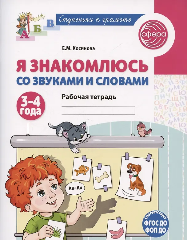 Рабочая тетрадь «Я знакомлюсь со звуками и словами» для детей 3-4 лет поможет сформировать прочный фундамент, на который в будущем будет опираться подготовка к обучению грамоте.