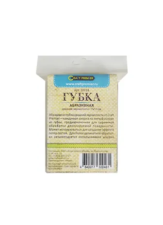 Абразивная губка средней зернистости от Craft Premier - наждачная шкурка на мягкой основе из губки, предназначенная для первичной обработки декорируемой поверхности. Может использоваться для создания эффекта потерстостей.