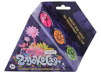 Это необычный набор для лепки из различных текстур. Из легкого пластилина, шарикового пластилина и различных украшений, можно создать нечто из ваших фантазий, что потом украсит стол или полочку. Набор развивает мелкую моторику и креативность. Глюкосад удивительно легко лепить, ведь всё, что вы слепите может быть Глюкосадом!