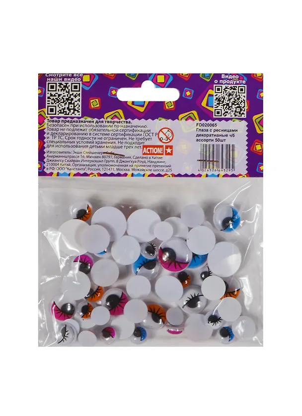 Глаза декоративные предназначены для детского творчества. Для детей старше 3-х лет.