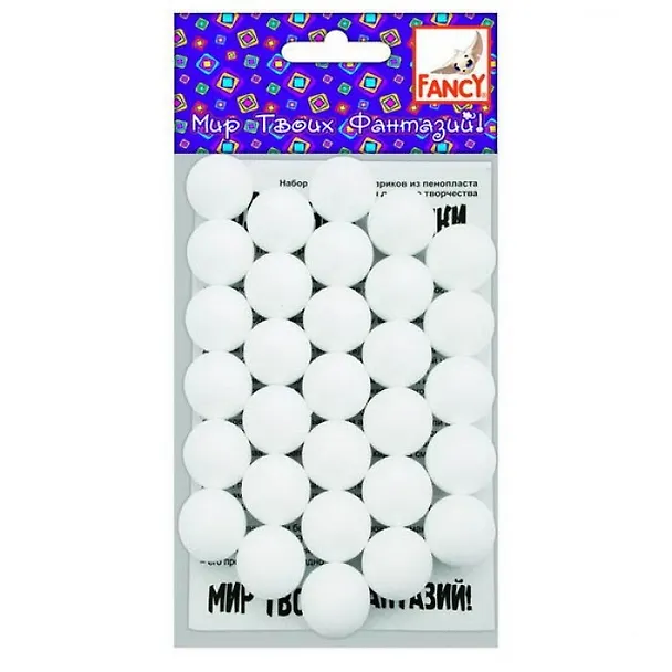 Набор шариков из пенопласта, d=20мм, 30 штук, п/п с европодвесом.