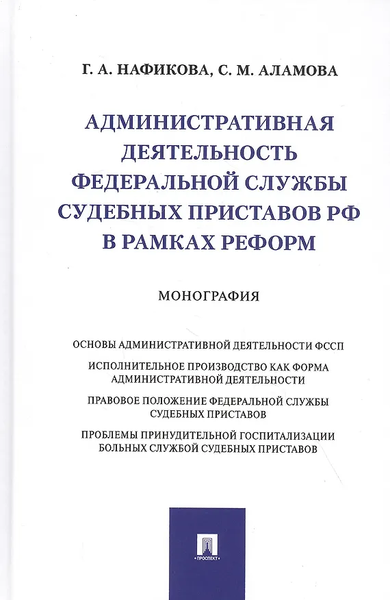 Научная монография имеет целью определить правовые основы административной деятельности Федеральной службы судебных приставов России в условиях реализуемой реформы и госпрограммы «Юстиция». Задача данных изменений – как административное усиление службы судебных приставов в связи с их переводом в разряд федеральных служащих и расширением полномочий, так и изменение их социальных гарантий. Повсеместная автоматизация процессов и развитие межведомственного взаимодействия даст возможность усилить позиции ФССП и сделать исполнительное производство более эффективным.