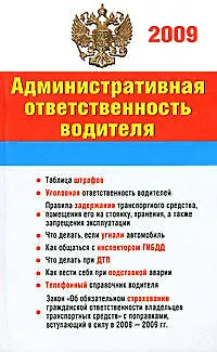 В этом издании: Таблица штрафов. Уголовная ответственность водителей. Правила задержания транспортного средства, помещения его на стоянку, хранения, а также запрещения эксплуатации. Что делать, если угнали автомобиль. Как общаться с инспектором ГИБДД. Что делать при ДТП. Как вести себя при подставной аварии. Телефонный справочник водителя. Закон "Об обязательном страховании гражданской ответственности владельцев транспортных средств" с поправками, вступающий в силу в 2008 - 2009 гг.