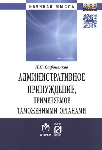 В монографии исследована проблема административного принуждения, применяемого таможенными органами, раскрыты теоретико-правовые и методологические основы административного принуждения, сформулированы научно обоснованные концептуальные положения административного принуждения, даны предложения по совершенствованию нормативно-правовой основы и деятельности таможенных органов по применению мер административного принуждения.