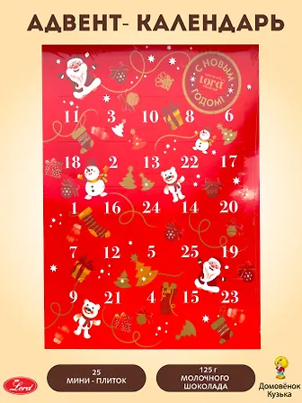 АДВЕНТ-КАЛЕНДАРЬ молочный шоколад, (мини плитки по 5г), 125г
