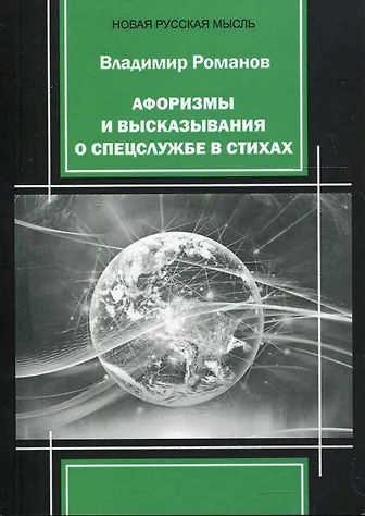 Афоризмы и высказывания о спецслужбе в стихах" -первый сборник произведений Владимира Романова на эту тему. Автор, много лет прослуживший за рубежом, выбранным жанром показывает важность и сложность работы спецслужб.