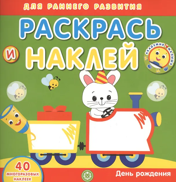 Академия малыша. Раскрась и наклей. День рождения. 40 многоразовых наклеек