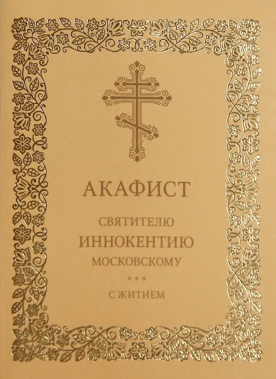 Акафист святителю Иннокентию напечатан крупным гражданским шрифтом с ударениями. Издание дополнено житием