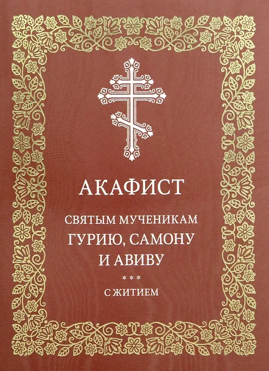 Мучеников Гурия, Самона и Авива, пострадавших в разное время в IV веке (Гурий и Самон раньше, Авив — годы спустя), объединяют общее место мученичества, ставшее общим для всех троих жизнеописание и общее церковное почитание. Но ещё более — общее посмертное чудо, благодаря которому многие сотни лет обращаются к их благодатной помощи православные христиане. Этих святых мучеников особенно чтут как покровителей христианского брака, счастливого супружества и семьи. Акафист напечатан крупным гражданским шрифтом; издание дополнено небольшим словарём и кратким житием мучеников Гурия, Самона и Авива с