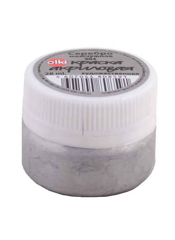 Цвет светлый, именно серебристый, серый, не плотный серебряный, не стальной и не свинцовый. Переливается при перекатывании на свету. Кроет раза со второго, если надо плотный цвет. Для лёгких искр в акварели хватило одного мазка. Хорошо легла на поверхность гранита! (Неожиданно) Баночка широкая, миниатюрная, удобная, экономичная. Пришла свежая, срок годности весь впереди.