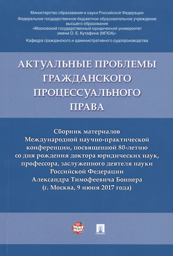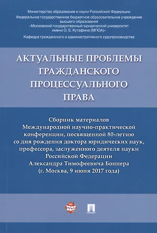 9 июня 2017 года в Университете имени О.Е.Кутафина (МГЮА) состоялась Международная научно-практическая конференция "Актуальные проблемы гражданского процессуального права", посвященная 80-летию со дня рождения доктора юридических наук, профессора, заслуженного деятеля науки Российской Федерации Александра Тимофеевича Боннера.