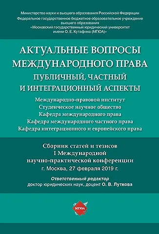 27 февраля 2019 г. в Международно-правовом институте Московского государственного юридического университета имени О. Е. Кутафина (МГЮА) состоялась I Международная научно-практическая конференция «Актуальные вопросы международного права: публичный, частный и интеграционный аспекты». Мероприятие проходило при поддержке профильных кафедр Международно-правового института (международного права, международного частного права, интеграционного и европейского права), а также при участии студенческого научного общества.