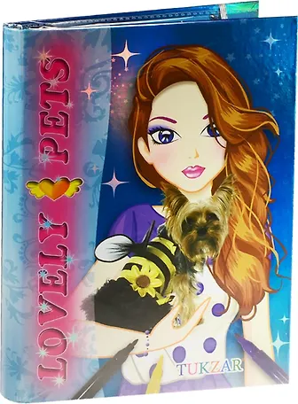 Альбом д/творч. Lovely Pets (Tz 15524) (6 цв. карандаш., 4 фломаст., 40 стр. с контур., 3 стр. накл., 2 трафар.) (Kids creative) (3+) (папка)