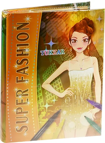 Альбом д/творч. Super Fashion (Tz 15523) (6 цв. карандаш., 4 фломаст., 40 стр. с контур., 3 стр. накл., 2 трафар.) (Kids creative) (3+) (папка)