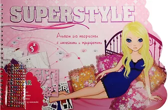 Альбом д/творч. Super Style с трафар. и накл. (Tz 10316) (накл., инструкц., 32 стр. контур., 3 съем. трафар.) (Kids creative) (пружина) (3+)