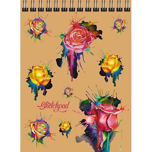 Скетчпад А4 (210х290), 40л.7БЦ, евроспир..Обл.: крафт картон, выб.лак. жестк. подл. Бум.120 г/м2. Крепл. линов. Акварельные розы. СПСЛ4005