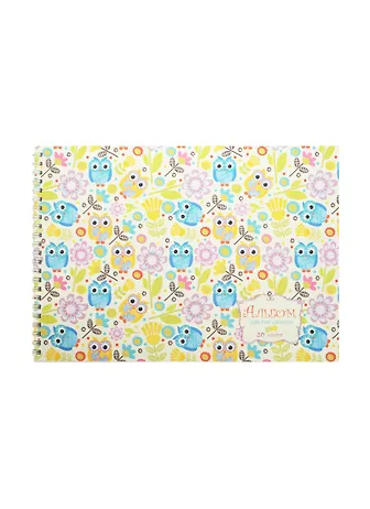 Альбом для рисования 20 листов А4 "Совы и цветочки (орнамент)" офсет 110г/м2, твин лак, набивка, евроспираль, Unnika