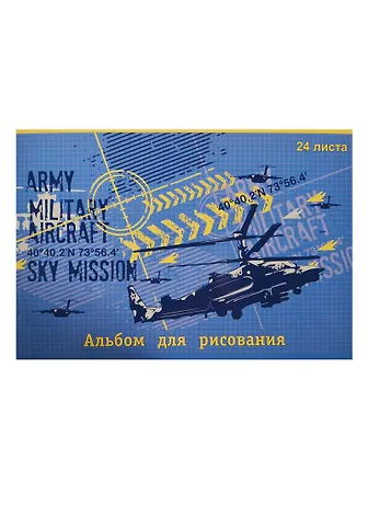 Альбом для рисования 24 листа А4 "ВЕРТОЛЕТ" обложка мелованный картон, сплошной УФ-лак, Феникс+