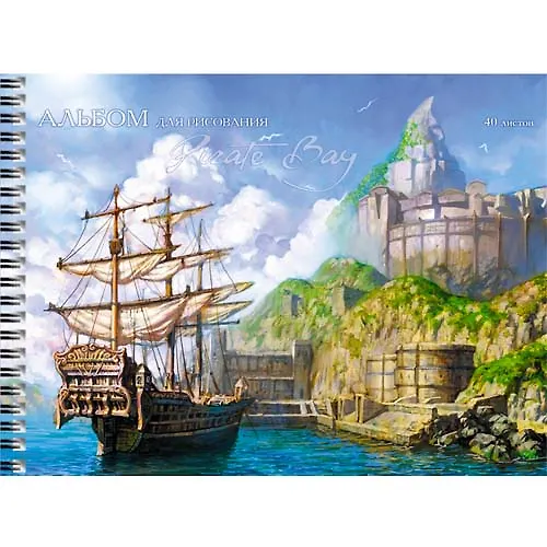 Альбом для рисования 40 листов А4 "Пиратская бухта" евроспираль, мелованный картон, матовое ламининирование, выборочный лак, офсет 140г/м2, Unnika