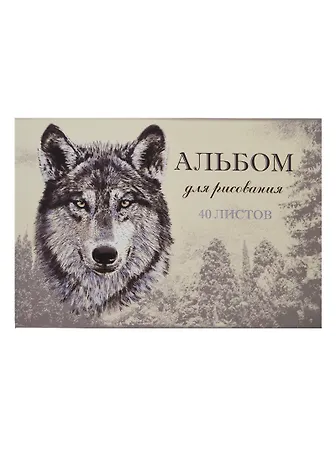 Альбом для рисования 40 листов А4 "ВОЛК" обложка мелованный картон, сплошной УФ-лак, клеевое крепление, подложка - жесткий картон, Феникс+