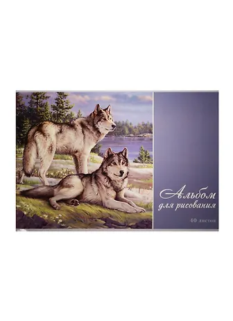 Альбом д/рисования 40 л. арт. 40389/5 ВОЛКИ У ОЗЕРА /А-4, скрепка, вн.блок офсет, обл. мелов картон, сплошной УФ-лак/