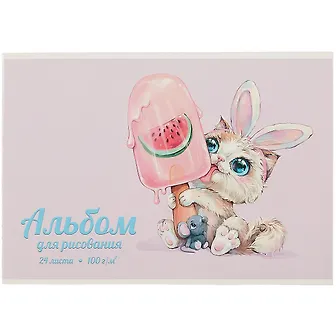 Альбом для рисования 24л А4 "ЗАЙКА-СЛАДКОЕЖКА" полноцветная печать, сплошной УФ-лак, мягкий переплёт