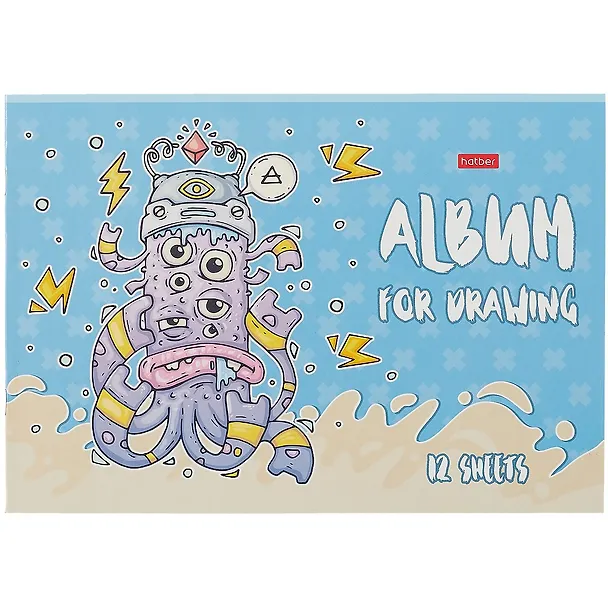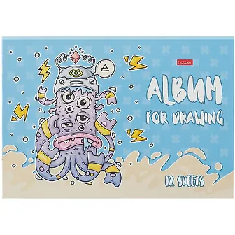 Хороший альбом, а4, на скрепке. Обложка - плотный картон. Рисунок очень забавный. Бумага белая, средней плотности. Альбом легкий, удобный для школьника начальных классов, когда и так портфель тяжёлый. Подходит как для рисования карандашами, пастелью, восковыми мелками, так и для рисования акварелью. Правда после акварели, листы немного волнистые становятся. Рекомендую.