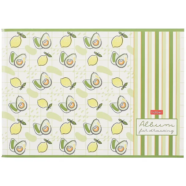 Альбом на скобах, гладкая обложка выполнена из плотного картона. Листы белые средней плотности, на ощупь гладкие. Заказывала по интернету внучке в школу, пришел вариант с яркими фруктами на розовом фоне. Качеством альбома остались довольны. Отлично подходит для рисования любыми изобразительными материалами.