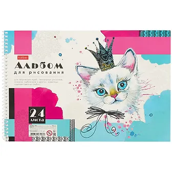 24А4тВсп АЛЬБОМ для рисования 24л А4ф перфорация на отрыв на спирали тиснение серия -Модные мордочки-