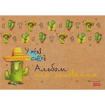 Приобрели альбом для рисования 48 листов на скрепке для уроков изобразительного искусства в школе. Веселая обложка с озорными кактусятами, принт нейтральный, может понравиться и мальчишкам и девочкам. Белая, плотная бумага. Отлично подходит для рисования карандашами и красками. Рекомендую для школьников и любителей рисования.