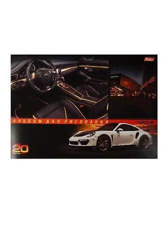 Альбом для рисования 20 листов А4 "SUPER CARS" мелованный картон, выборочный лак, скрепка, Hatber. В ассортименте, без возможности выбора