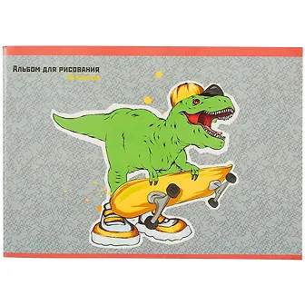 Альбом для рисования Listoff, "Дино скейтер", А4, 40 листов, на скрепке