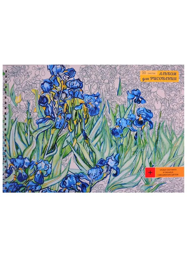 Цена такого альбома для рисования более чем оправданна, так как, во-первых, там 30 листов, во-вторых, на внутренних корочках есть подсказки к зарисовкам, в-третьих, и это на мой взгляд, одно из важных причин покупки, его обложка, на которой изображены знаменитые ирисы Ван Гога, что, бесспорно, вдохновляет и одухотворяет. Хочется творить, рисовать свои собственные картины.