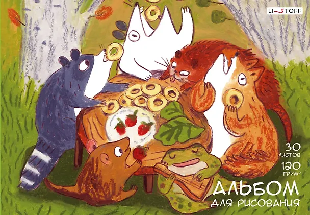 Альбом для рисования на склейке от Listoff с уроками скетчинга для тех, кто хочет научиться этой модной технике. Комбинация классического альбома для рисования с контентом: таблица по смешиванию цветов, пошаговые уроки скетчинга. На обложке изображены опоссум и его забавные лесные друзья.Плотность бумаги (140гр) позволяет использовать для рисования карандаши цветные, чернографитные и акварельные, восковые мелки, художественную пастель, фломастеры, ручки. Крепление на склейке, А4 формата, 30 листов.