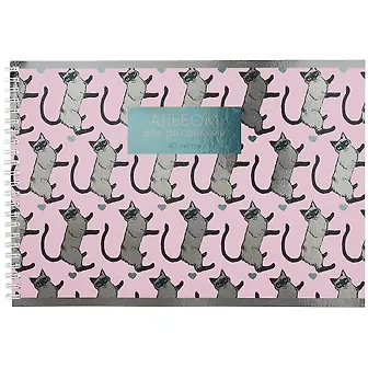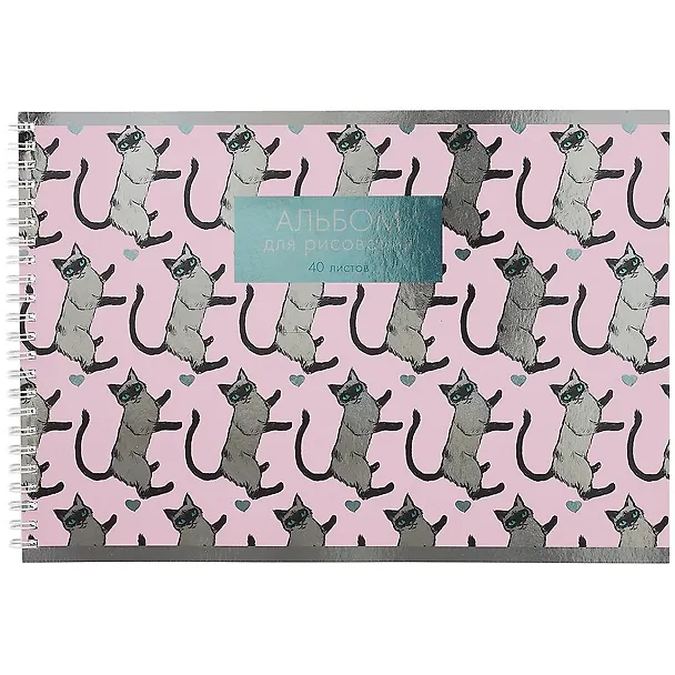 Альбом для рисования 40л А4 "Сиамские кошечки" гребень, печать по металл. пленке "серебро", твин-лак.