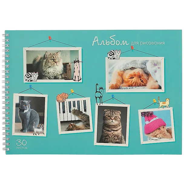 Альбом для рисования Unnika, "Кошачий вернисаж", А4, 30 листов, на гребне