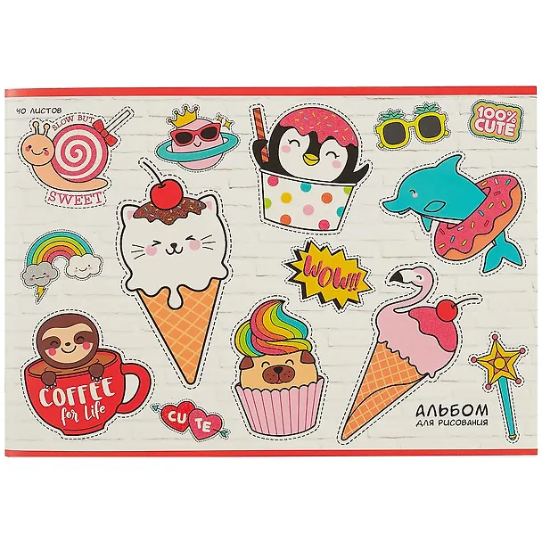 Альбом для рисования Unnika, "Модные наклейки", А4, 40 листов, на скрепке
