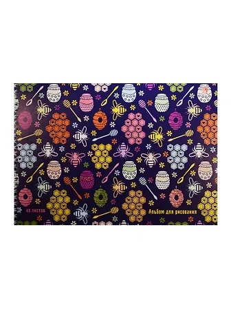 Альбом для рисования Unnika, "Разноцветные пчелки (орнамент)", А4, 40 листов, на гребне